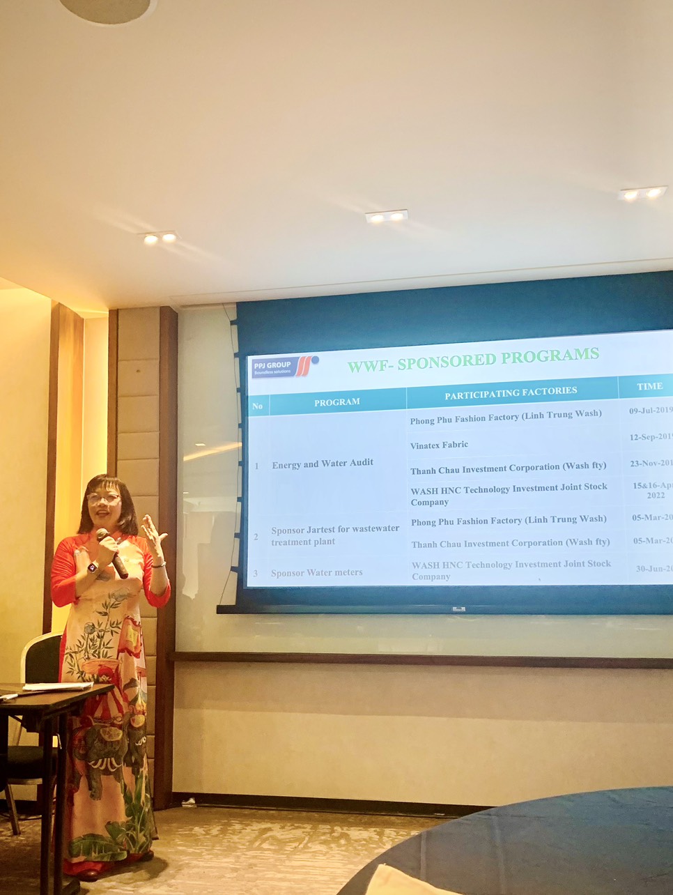 Bà Nguyễn Thị liên – Phó TGĐ là đại diện của Tập đoàn PPJ Group cùng với các đại diện từ tổ chức WWF, và anh Kevin chuyên viên tuân thủ cao cấp của H&M và cũng là một nhà mua hàng của PPJ Group, đã tham dự hội nghị này để đóng góp kinh nghiệm và kiến thức của mình với cộng đồng tham gia hội nghị.