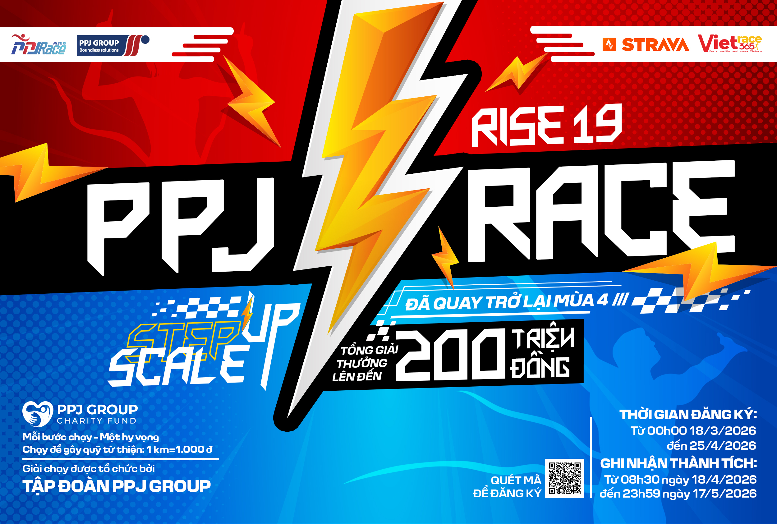 Và hôm nay, khi Tập đoàn bước vào cột mốc 19 năm hình thành và phát triển, chúng ta lại có thêm một lý do để tiếp tục hành trình ấy. Ban Tổ chức trân trọng công bố GIẢI CHẠY TRỰC TUYẾN PPJ RACE – RISE 19, mùa giải thứ 4 chính thức khởi động! Với khẩu hiệu “STEP UP – SCALE UP”, PPJ Race – Rise 19 là lời kêu gọi mỗi cá nhân bước lên một nấc thang mới, vượt qua giới hạn của chính mình, mở rộng những giá trị mà PPJ đã bền bỉ xây dựng suốt 19 năm qua.