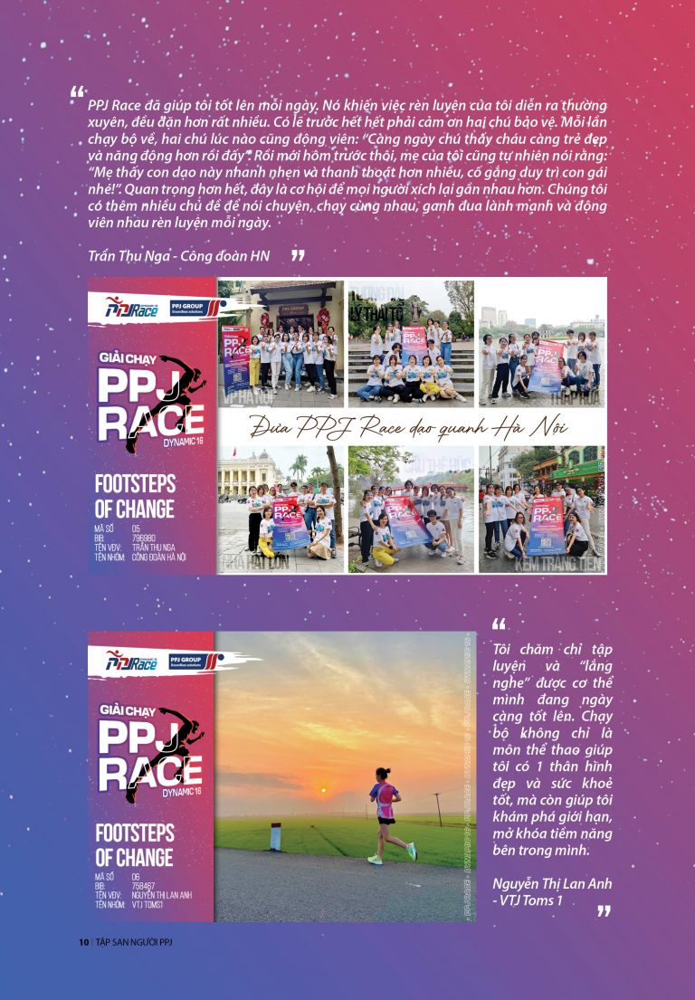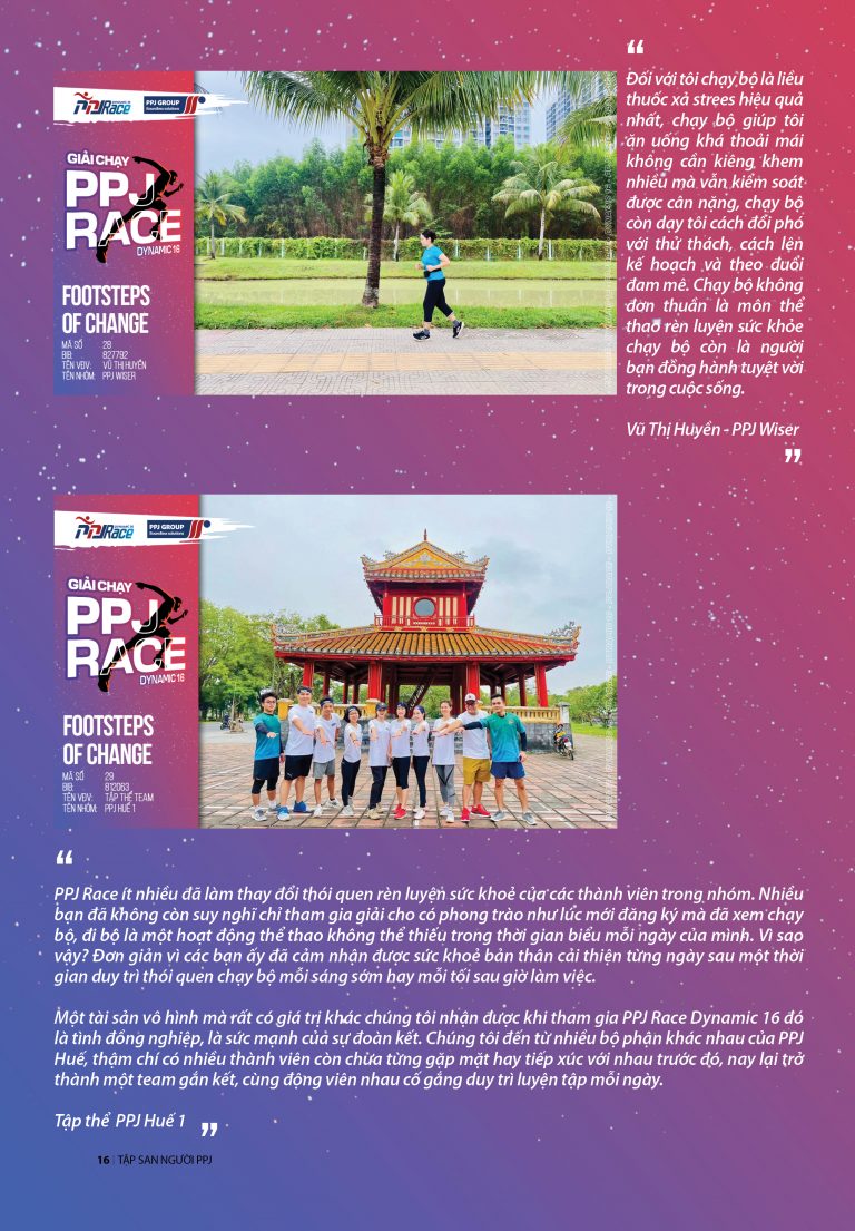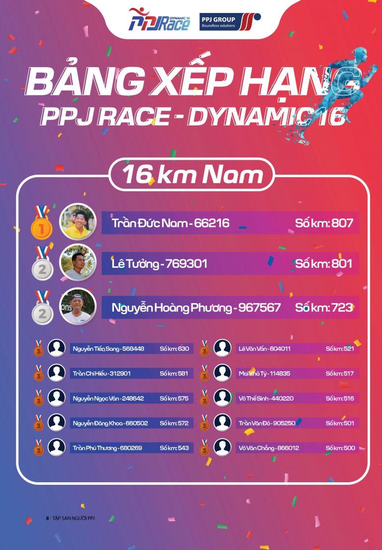 Giải chạy PPJ Race – Dynamic 16 được diễn ra từ ngày 15/3/2023 đến 15/4/2023 để chào mừng PPJ Group 16 tuổi. Sau một tháng thi đấu hăng say, hết mình, Giải chạy đã chính thức khép lại, để lại nhiều kỷ niệm và dấu ấn đẹp trong lòng mỗi runners. Kể từ ngày đầu tiên phát động, không chỉ các thí sinh, mà ngay cả BTC cũng đã nhận được rất nhiều, đó là học cách chăm sóc, trân trọng sức khỏe của mình, hiểu thêm về giá trị của sự nỗ lực, quyết tâm, khám phá ra được những giới hạn mà trước kia chưa bao giờ mơ đến, để từ đó, chúng ta lại nhìn thấy chúng ta ở phiên bản tốt hơn ngày hôm qua, nhưng không tốt bằng ngày mai.