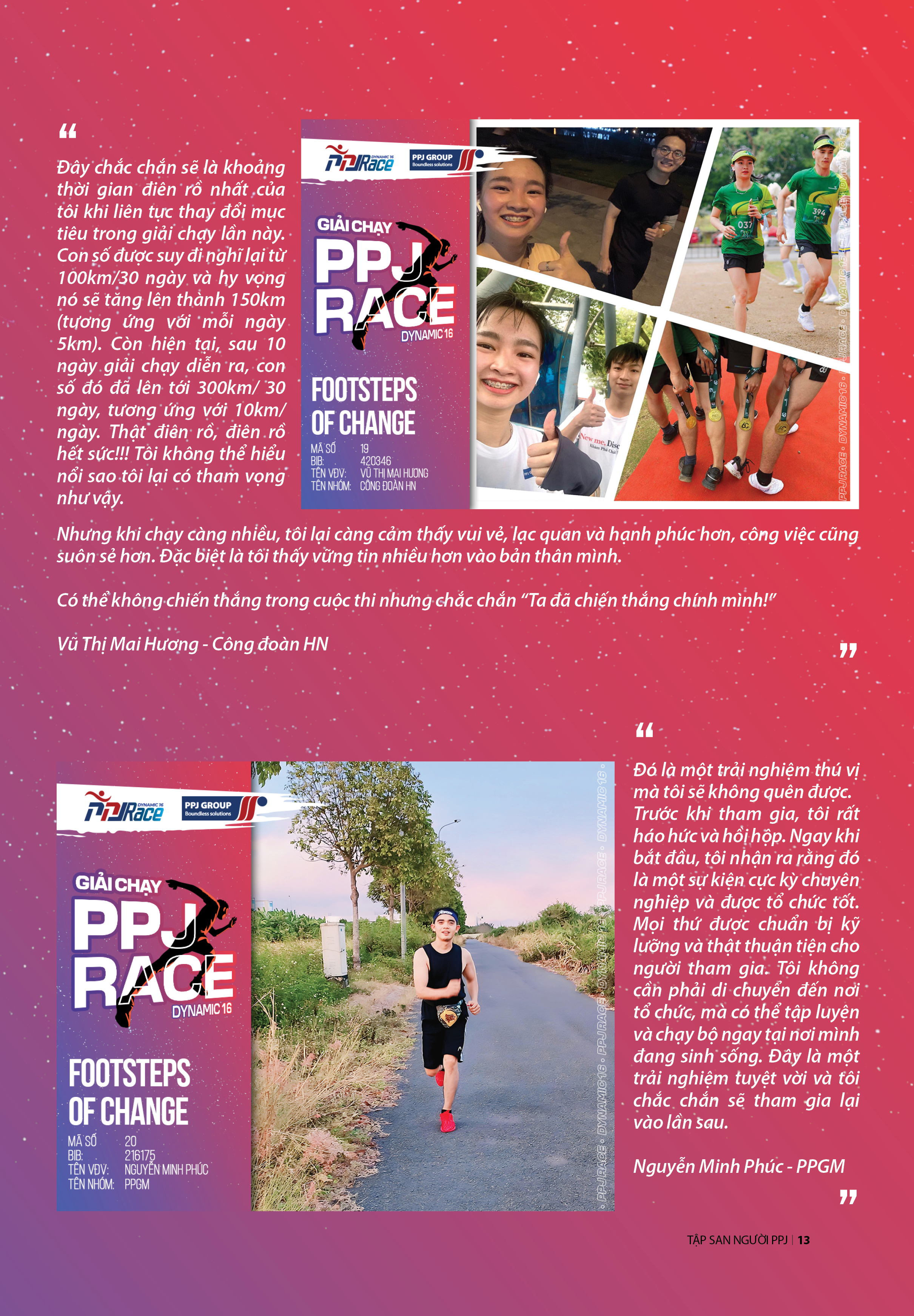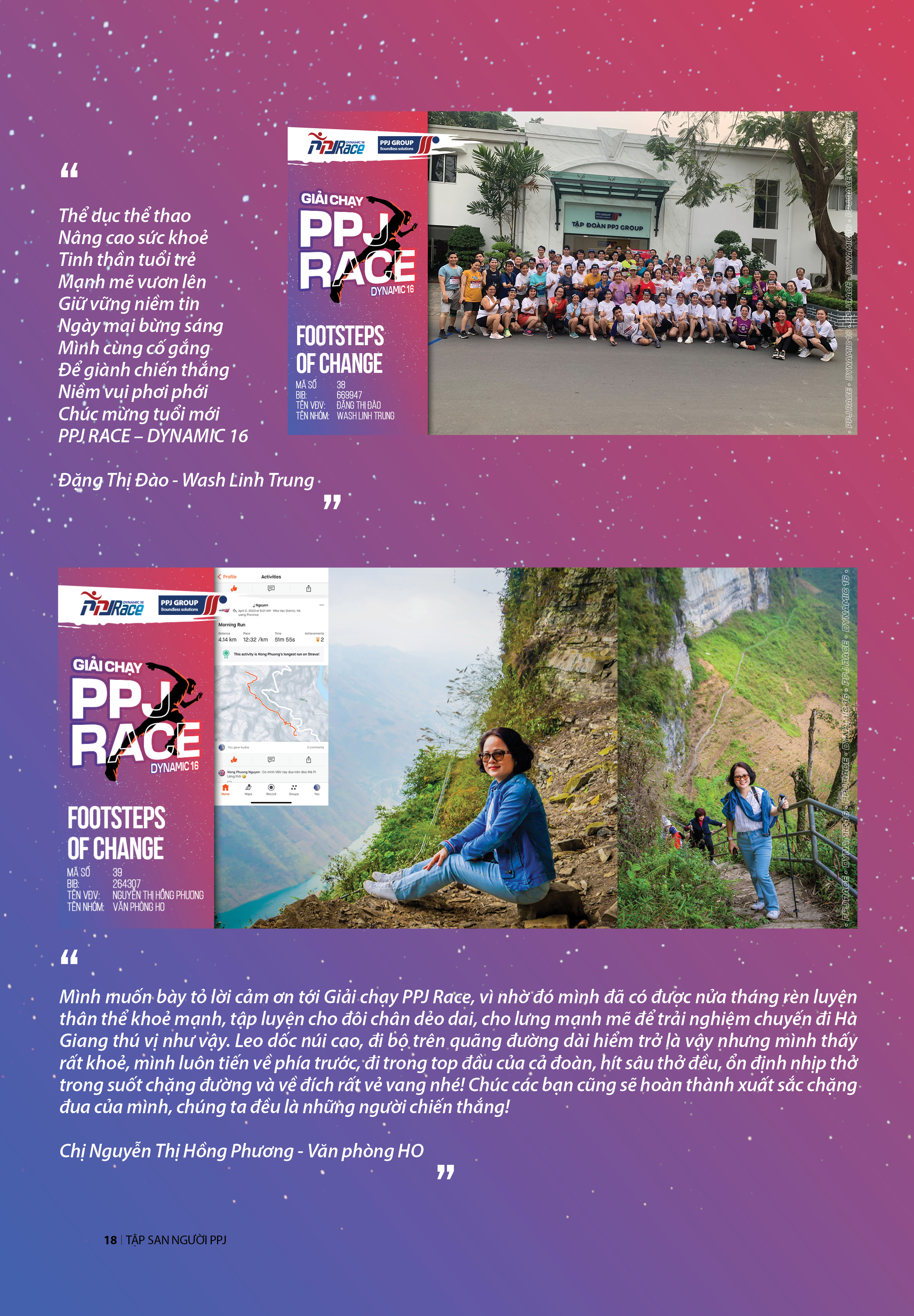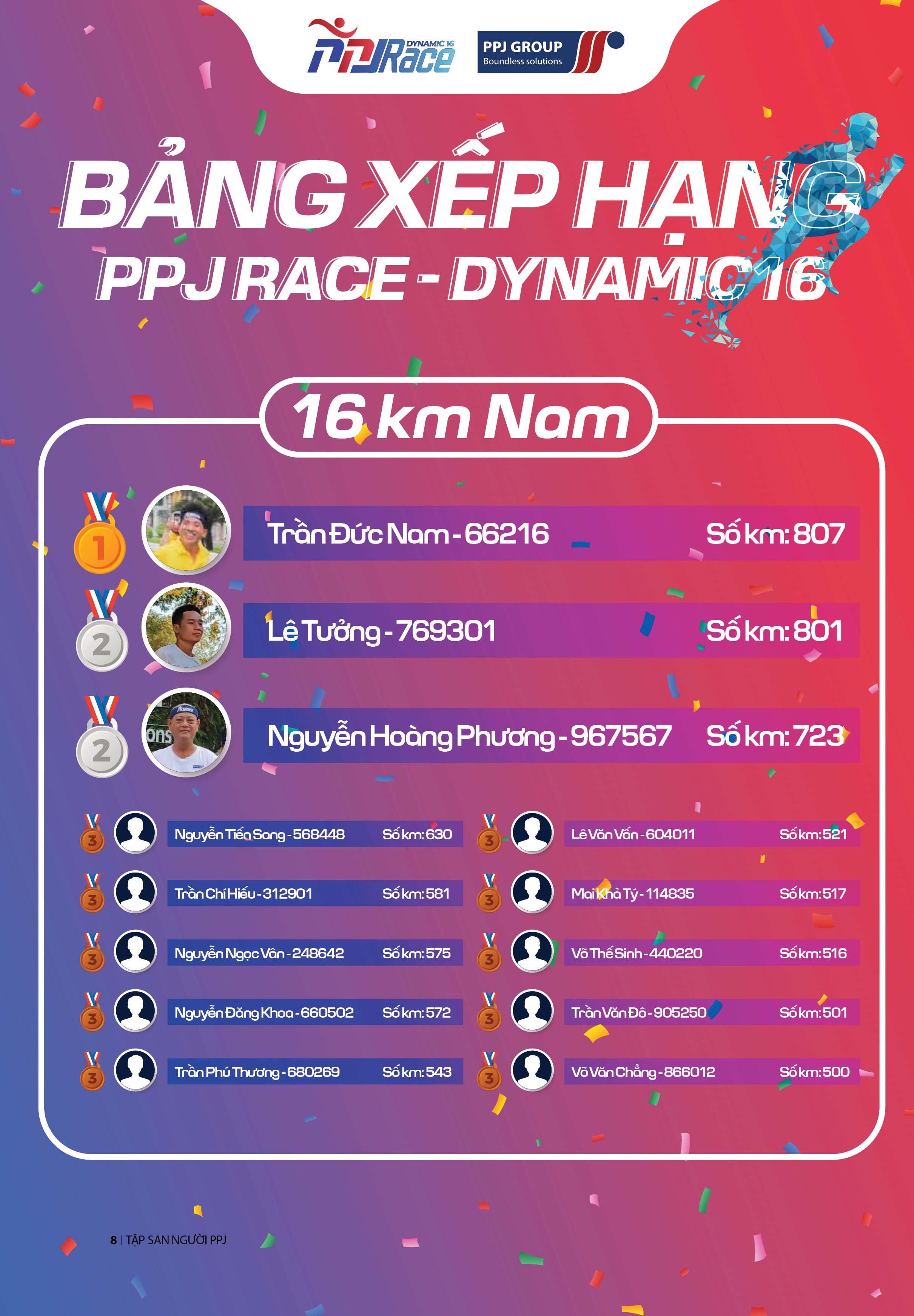 Giải chạy PPJ Race – Dynamic 16 được diễn ra từ ngày 15/3/2023 đến 15/4/2023 để chào mừng PPJ Group 16 tuổi. Sau một tháng thi đấu hăng say, hết mình, Giải chạy đã chính thức khép lại, để lại nhiều kỷ niệm và dấu ấn đẹp trong lòng mỗi runners. Kể từ ngày đầu tiên phát động, không chỉ các thí sinh, mà ngay cả BTC cũng đã nhận được rất nhiều, đó là học cách chăm sóc, trân trọng sức khỏe của mình, hiểu thêm về giá trị của sự nỗ lực, quyết tâm, khám phá ra được những giới hạn mà trước kia chưa bao giờ mơ đến, để từ đó, chúng ta lại nhìn thấy chúng ta ở phiên bản tốt hơn ngày hôm qua, nhưng không tốt bằng ngày mai.