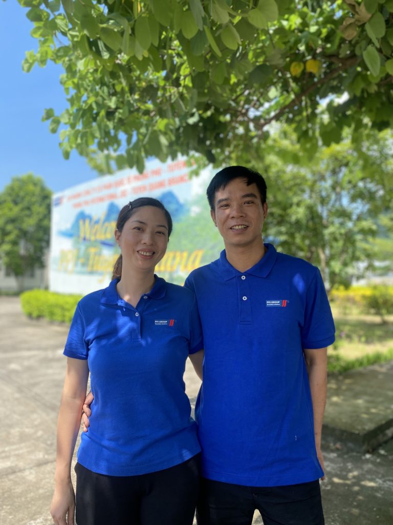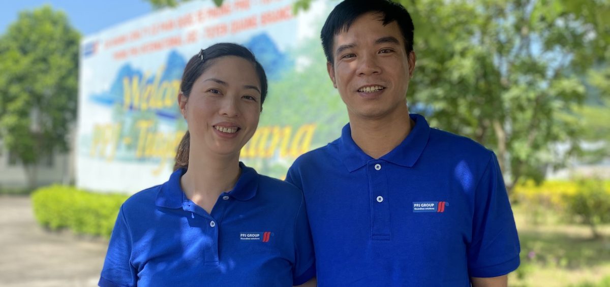 Chị Lê Thị Oanh – Tổ trưởng Chuyền may 2, cùng chồng là anh Đinh Quang Hoàng – QC kiểm vải là một trong những người đầu quân cho Nhà máy từ những ngày đầu tiên PPJ Tuyên Quang đi vào hoạt động. Anh Hoàng là người Tuyên Quang, còn chị Oanh sinh ra và lớn lên ở Thái Nguyên. Hai anh chị gặp gỡ và nên duyên tại Hà Nội, khi cả hai cùng làm việc cho một công ty sản xuất bao bì ở khu vực ngoại thành. Mức lương của hai vợ chồng không quá thấp, nhưng chi phí cho gia đình nhỏ gồm hai người lớn, hai em bé sinh hoạt và học tập ở đất thủ đô đắt đỏ lại là một con số khổng lồ. Lựa chọn tha hương vốn không dễ dàng, ở lại quê thì chỉ có công việc đồng áng nhiều chật vật, còn bám trụ ở thành phố thì cuộc sống mưu sinh cũng eo hẹp và vất vả nhiều bề. Năm 2016, nghe tin Nhà máy May Tuyên Quang được xây dựng hoàn tất và đi vào hoạt động, anh chị bàn nhau “bỏ phố về quê”, mang theo cả gia đình nhỏ và ước mơ xây nên tổ ấm mới ở vùng đất mà anh đã “chôn nhau cắt rốn”. Người mừng nhất, có lẽ chính là bố mẹ anh Hoàng, khi tuổi già được ở gần con, gần cháu. Chị Oanh kể: “Khi còn ở Hà Nội, chị làm nhân viên trong Phòng Kế hoạch. Thật ra đa phần ai cũng mong muốn làm công việc “bàn giấy” nhẹ nhàng, sống ở thành phố lớn xa hoa nhộn nhịp, đó là lí do mà có nhiều người trẻ rời quê ra phố đến vậy. Nhưng sau nhiều năm bám trụ ở Hà Nội, hai vợ chồng vẫn ở thuê trong căn nhà con con, gồng mình mãi cũng mỏi mệt. Nghe tin Nhà máy mới được xây lên cách nhà anh Hoàng chỉ 3km, hai vợ chồng chị bàn bạc rồi hạ quyết tâm về quê. Thực ra không chỉ là chuyển nơi sinh sống, mà còn là chuyển nghề, vì cả hai vợ chồng chị đều chưa có kinh nghiệm về may mặc. Anh xin vào bộ phận QC, còn chị vào Nhà máy làm công nhân may, làm quen với kim chỉ, với máy may, với vải vóc từ đầu. Nhưng hình như những kinh nghiệm và kỹ năng từ công việc ở Phòng Kế hoạch trước kia không hẳn là bỏ phí. Sau một năm, chị may mắn được lãnh đạo ghi nhận, cất nhắc lên vị trí Tổ phó, và giờ là Tổ trưởng. Chuyền 2 của chị là một trong những chuyền được thành lập đầu tiên của Nhà máy, gồm toàn những chị em có tay nghề vững nhất, luôn đạt được hiệu suất cao nhất, và cũng là những nhân sự kỳ cựu xác định gắn bó lâu dài với Nhà máy.”