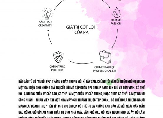 NGƯỜI PPJ CỦA THÁNG Bắt đầu từ số “Người PPJ” tháng 9 này, trong mỗi kì Tập san, chúng tôi sẽ giới thiệu những gương mặt đại diện cho những Giá trị cốt lõi mà Tập đoàn PPJ Group đang gìn giữ và tôn vinh. Có thể họ là những quản lý cấp cao,